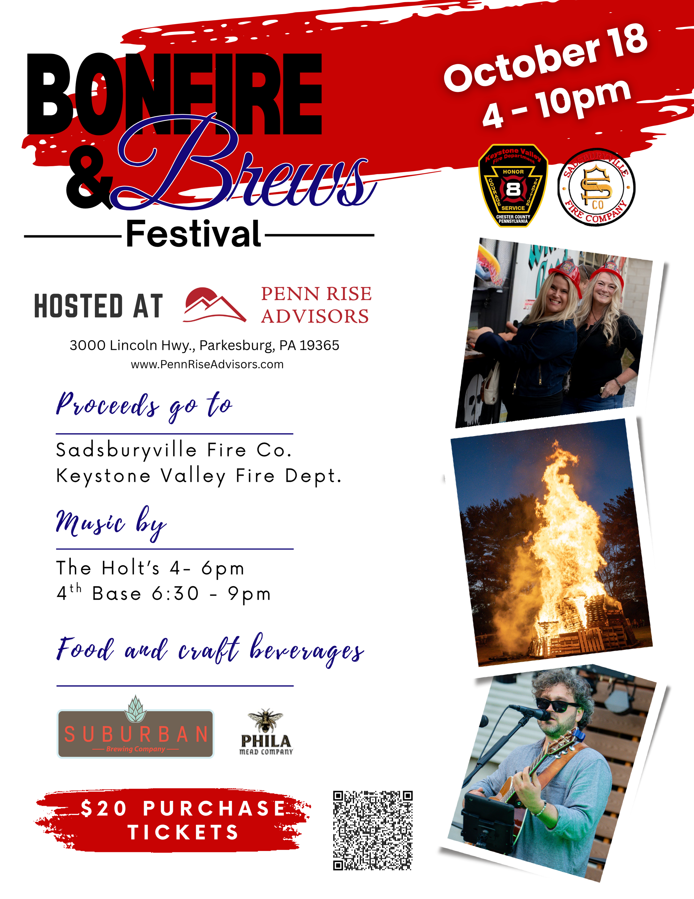 Get ready for a night of community, music, and fun at the 2025 Bonfire & Brews Festival, hosted in the field behind our Penn Rise Advisors building in Parkesburg, PA!